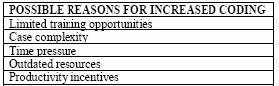 You are the coding supervisor at a large inpatient facility. Recently, there has been an increase in coding errors. You have a meeting with your coders to discuss possible reasons for the problem. The group agrees on the reasons listed below: