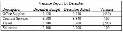 As the HIM manager in charge of your department's budget, you are mandated to report on variances of more than 6% either positive or negative to your Chief Financial Officer and include the reasons for the variance and any action plans necessary. Based on the table below for the December variance report, what category would you be required to report on to the CFO?