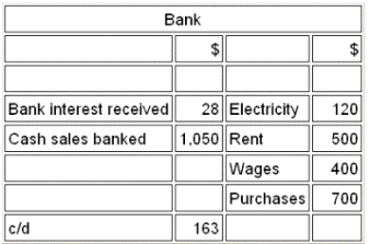 Which of the following would be the opening balance on the bank ledger account?