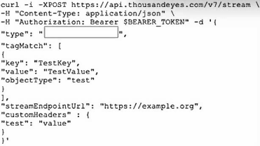 While other options exist in the ThousandEyes ecosystem, they do not fit the specific API call shown for this use case: