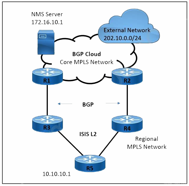 Network management server IP 172.16.10.1 must be advertised from the core MPLS network to the regional domain.