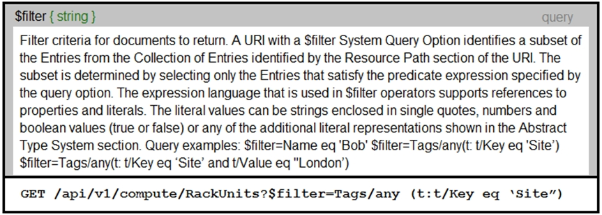An Intersight API is being used to query RackUnit resources that have a tag keyword set to ''Site''. What is the expected output of this command?