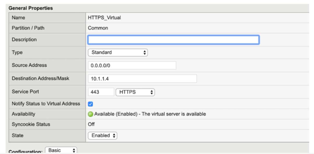 According to the provided exhibit, the 'SSL Profile (Client)' section in the Virtual Server configuration is empty. For a BIG-IP system to process HTTPS traffic, it must act as an SSL/TLS endpoint. This process, known as SSL Termination or SSL Offload, requires the assignment of a Client SSL Profile to the Virtual Server. Without this profile, the BIG-IP does not have the necessary certificate and private key information to perform the SSL handshake with the client's browser. Consequently, when a user attempts to connect via HTTPS, the TCP connection may establish, but the SSL handshake will fail because the BIG-IP will not know how to decrypt the incoming encrypted packets.