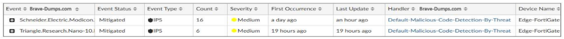 The correct answer is D. Automatically by an event handler. The study guide explicitly states that ''Event handlers generate events on FortiAnalyzer'' and ''FortiAnalyzer uses event handlers to filter all incoming logs. If the logs received match the conditions set in the event handlers, FortiAnalyzer generates an event.'' It also says ''You can view all generated events on the Event Monitor page.'' This directly matches the exhibit, which is showing entries on the Event Monitor page. Therefore, the attack shown there was detected automatically through an event handler.