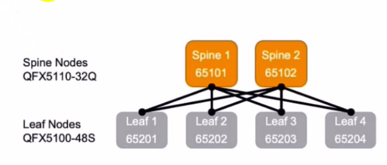 -- Each leaf node has (1) 40GbE interface to each of the 2 spine nodes