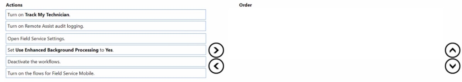 Which four steps must you take, in sequence, to successfully implement this capability within the schedule board? To answer, move the appropriate actions from the list of actions to the answer area and arrange them in the correct order.