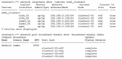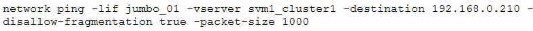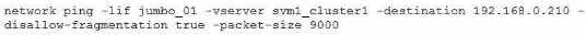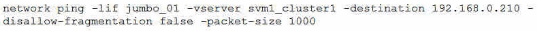 Referring to the exhibit, which ONTAP command will help isolate a possible MTU mismatch?