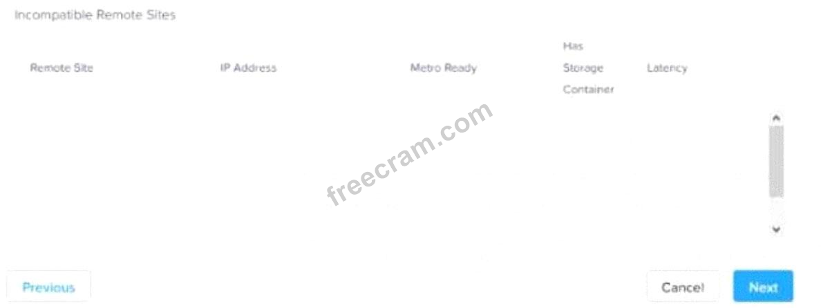 An administrator is trying to configure Metro Availability between Nutanix ESXi-based clusters. However, the Compatible Remote Sites screen does not list all required storage containers.
