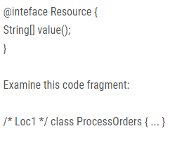 Which two annotations may be applied at Loc1 in the code fragment? (Choose two.)