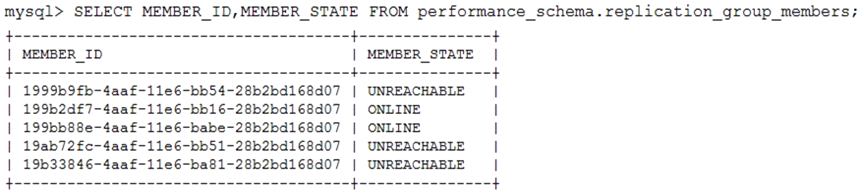 There are five MySQL instances configured with a working group replication.
