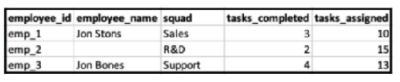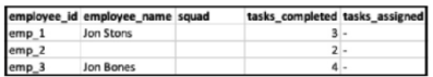When filtering on the entire date range (1-30/8), and querying employee ID, Name and Squad with the two measurements - what will the result look like?