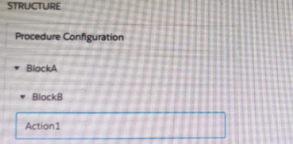 Hold on, this isn't a 'block'buster movie, it's a certification exam! I'm going with D) BlockB: BlockB. Action1. The diagram shows BlockB as the parent of Action1, so that's my pick.