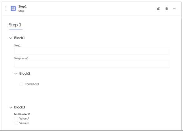 What JSON code correct represent the step in the OmniScript Structure panel shown?