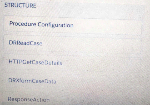 Refer to the exhibit below. What is the merge code needed for this Integration Procedure structure to pass a CaseData node from the HTTP Action's output to the DataRaptor Transform Action?
