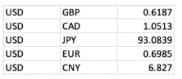 The screenshot below is the entire currency conversion table. The functional currency of this customer is USD. Which currency view modes can be used with this table?