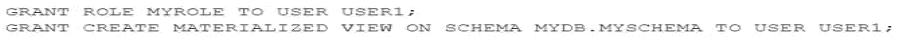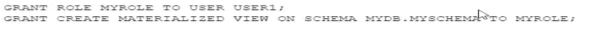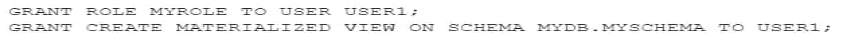 A user needs to create a materialized view in the schema MYDB.MYSCHEMA.